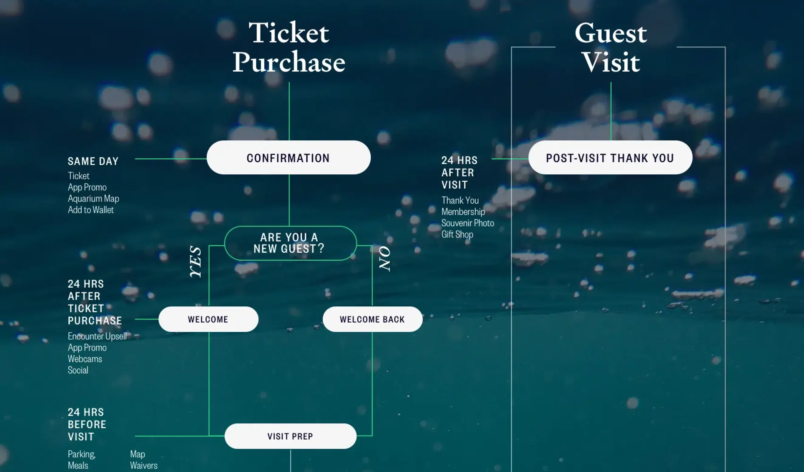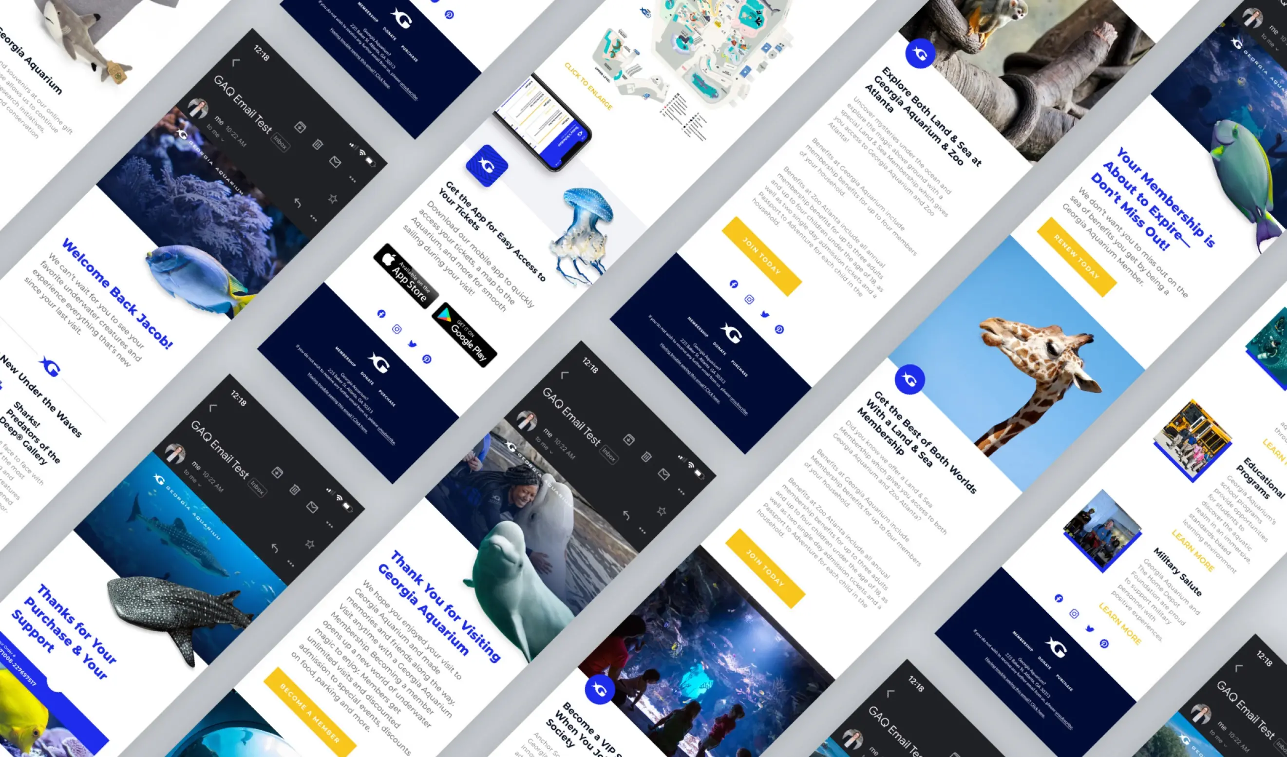 To give Georgia Aquarium guests custom-tailored emails before, during and after their visits, Alloy integrated WordPress CMS, Tessitura, and Iterable to create a dynamic martech and e-commerce ecosystem. This integration allowed us to customize the Aquarium’s email communications so we could provide guests with specific information based on purchased items, targeted promotions, and personalized customer journeys. By leveraging order data, time and day of visit, membership or donor status, and historical purchases, we drove upsell opportunities and defined nurture paths.