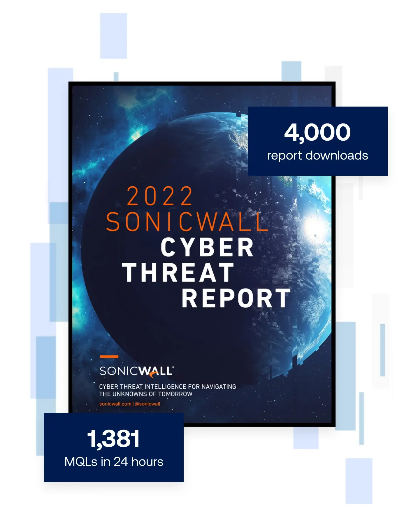 SonicWall retained Alloy just 14 days before its 2022 threat report was set to go-live. With limited time and big goals, Alloy expedited the development of a strategic campaign plan to ensure a successful launch, moving traditional onboarding, planning and ongoing PR initiatives to a later date. The campaign garnered over 90 pieces of coverage within the first quarter and nearly 4,000 report downloads and 1,381 MQLs within 24 hours - an all-time day one record for SonicWall.